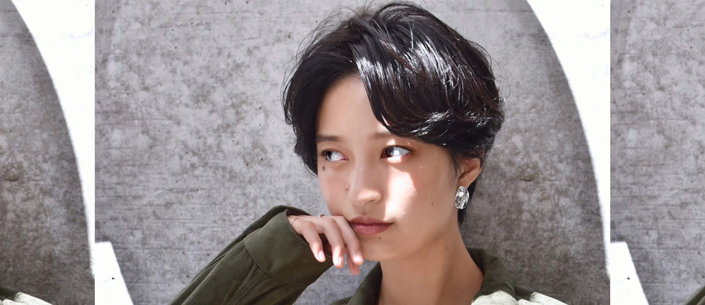 秋冬はニットやパーカーなど洋服にボリュームの出てくる季節なので、ヘアはスッキリとタイトなショートがおすすめ。少し重めに作ることで、ショートスタイルでも季節感を損なわないように作りました!