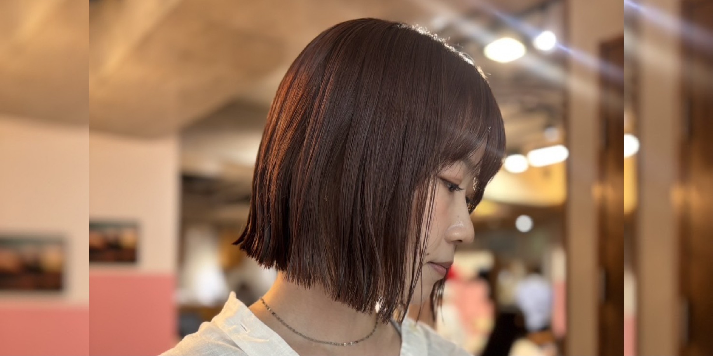 やわらかいハイトーンベージュに人気のミニボブを合わせ、「外国人の女の子」をイメージしたスタイル。スタイリングは全体に内巻きカールをつけ、N.ポリッシュオイルを束感が出るようになじませてセットします。